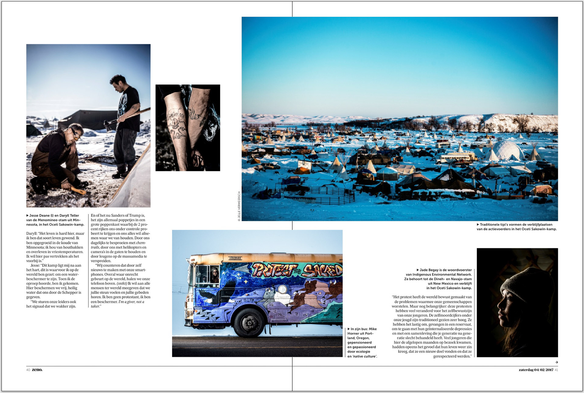 Over the course of 2016, many people, mostly Native Americans, united in a common fight against the arrival of the Dakota Access Pipeline in North Dakota. Just north of Canon Ball, ND, they set up the Oceti Sakowin and Sacred Stone camps. In January 2017 I visited these brave people and wrote down their stories.